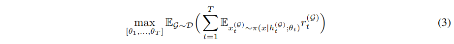 학습이 이루어지고 난 후에, 학습된 policy는 같은 분포를 따르는 새로운 graph인 $\mathbb{g}^{\prime} ~ \mathbb{D}$를 parameter가 특정 $\mathbb{g}$에 연결되어 있지 않도록 generalize할 수 있다.