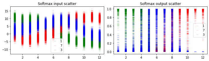 - 위에서 나온 class의 분포를 softmax input과 output에 대하여 그려놓은 것이다.