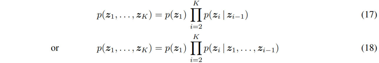 하나의 latent variable $z$를 갖는 것 대신에, 위 수식처럼 서로 hierarchical하게 depend하는 k개의 다른 latent variables ${z_1, ... , z_k}$를 갖는다.