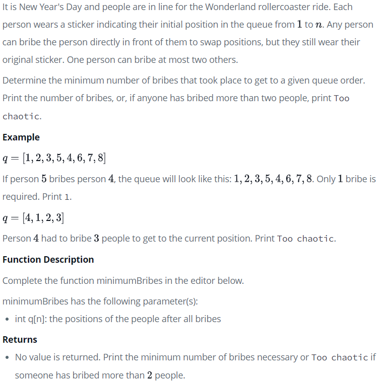 - 주석처리 하지 않은 minimumBribes 함수는 커뮤니티에서 가져온 코드이다.