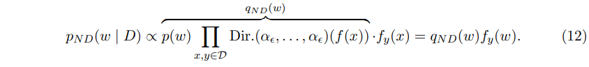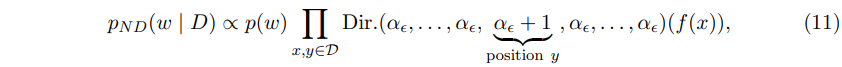 Dirichlet과 multinomial dist.이 conjugate한 것을 사용하여, $p_{ND}$를 아래 수식 (12)처럼 다시 쓸 수 있다.