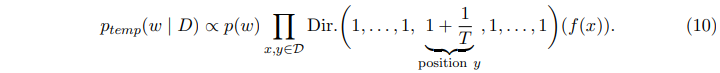 게다가 수식 (10)번으로부터 우리는 논란의 여지 없이 완벽하게 multinomial 모델로써 사용하는 것이 tempered likelihood가 각 training datapoint에서 관찰되는 label의 $1/T$를 count하는 것임을 자연스럽게 생각해볼 수 있다.