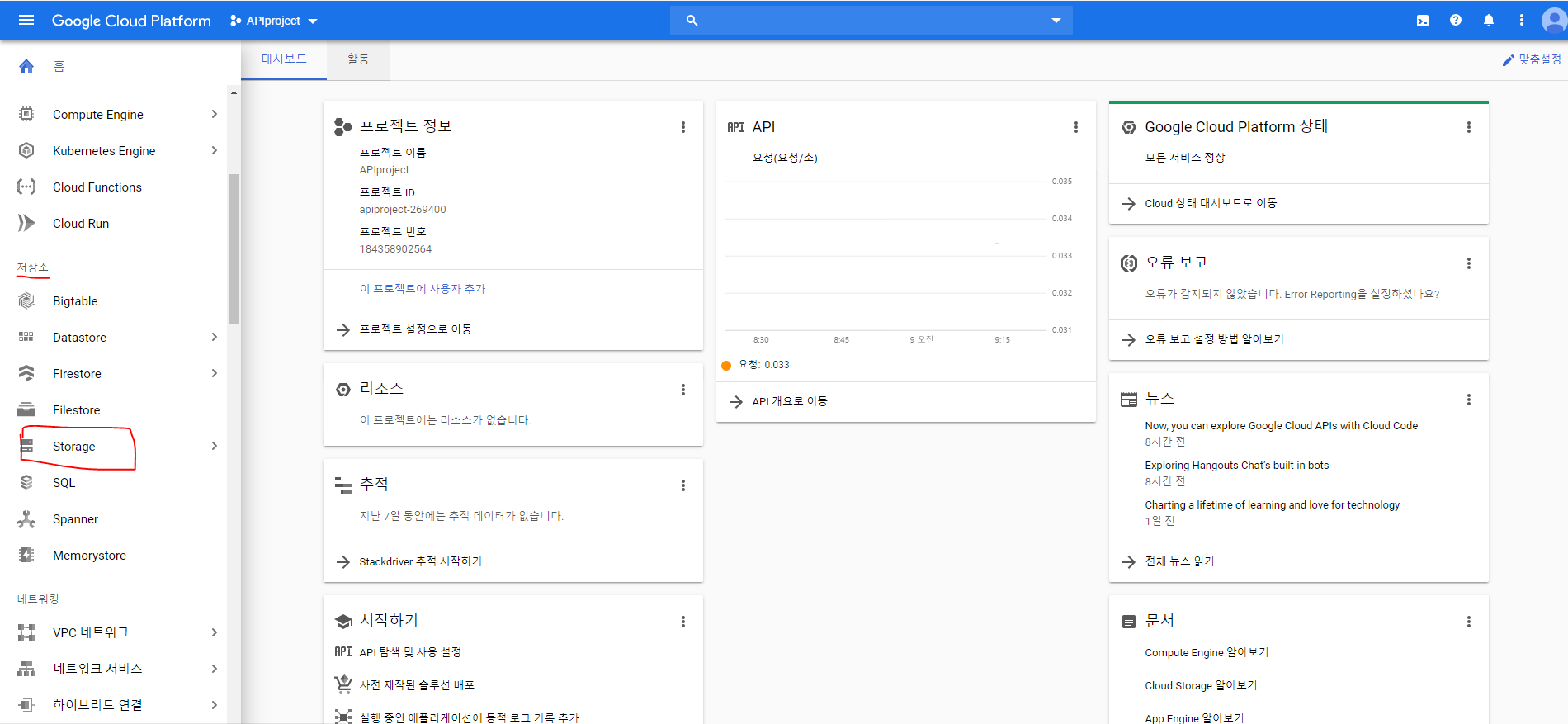 1. 왼쪽의 메뉴바에서 저장소 - Storage를 클릭한다.