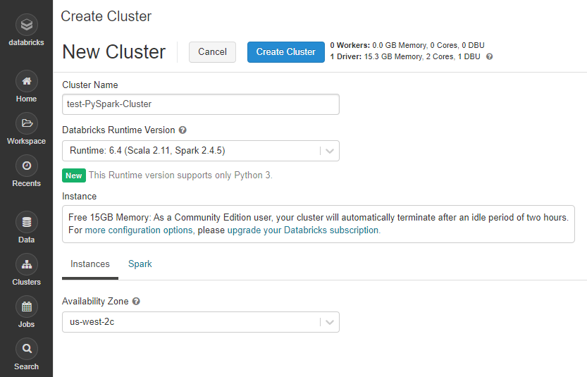 기본적으로 본 강의에서는 pySpark를 실행할 수 있는 환경을 Databricks라는 클라우드 플랫폼을 선택했다. Databricks는 유로 클라우드 서비스이지만 무료버전에서도 충분히 사용할 수 있다는 설명이 적혀져 있었다.(test성으로...)