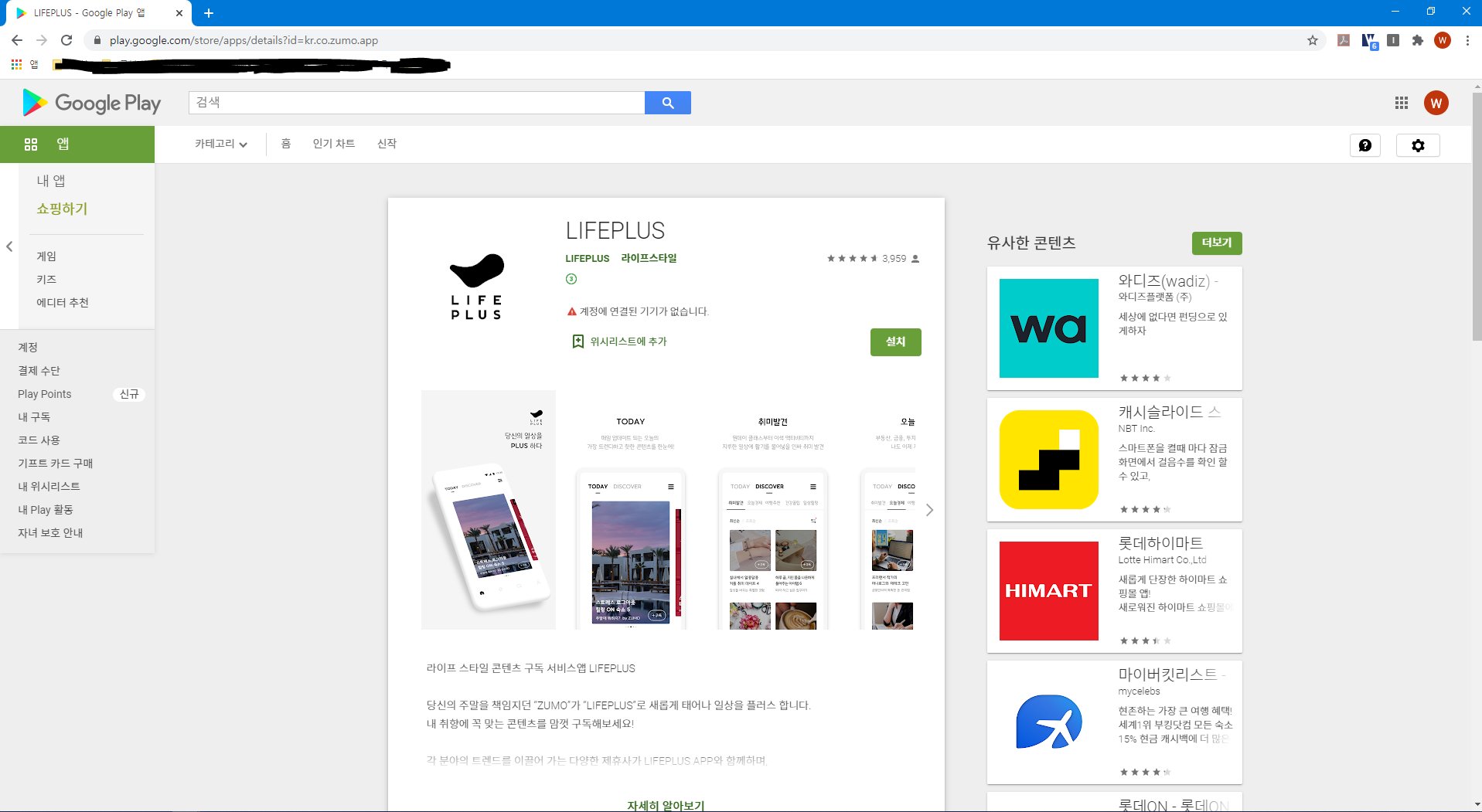먼저, 플레이스토어에 접속하고 내가 원하는 어플 이름을 검색한다.