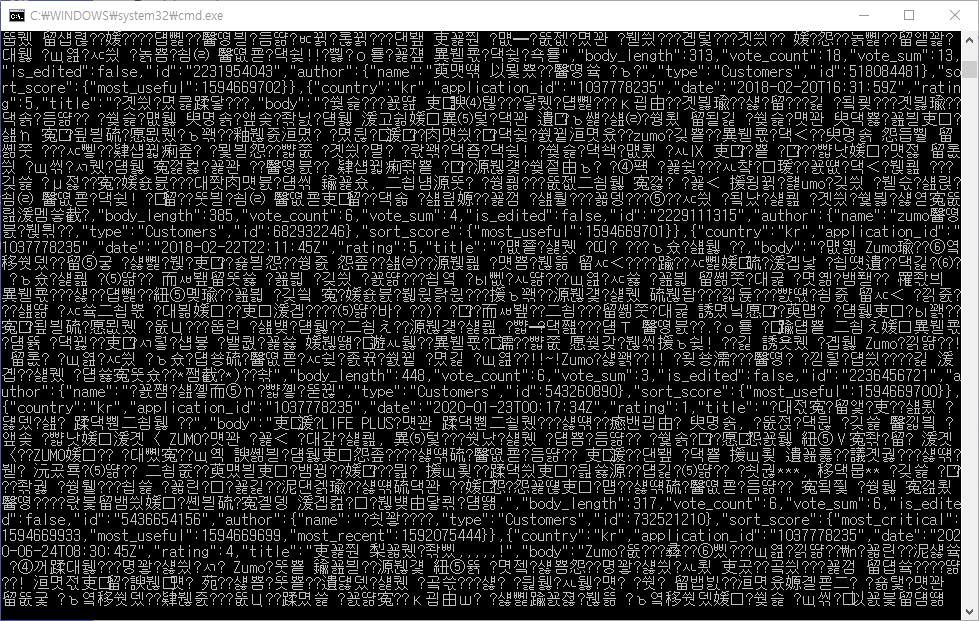 그럼 이제 준비가 되었으니 한 번 API를 이용해 리뷰데이터를 가져와보자.