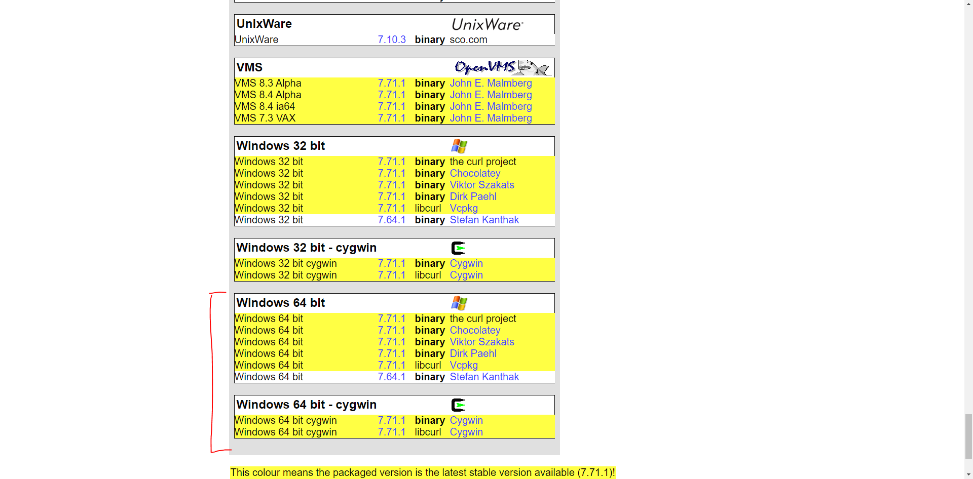 "This colour means the packaged version is the latest stable version available (7.71.1)!"