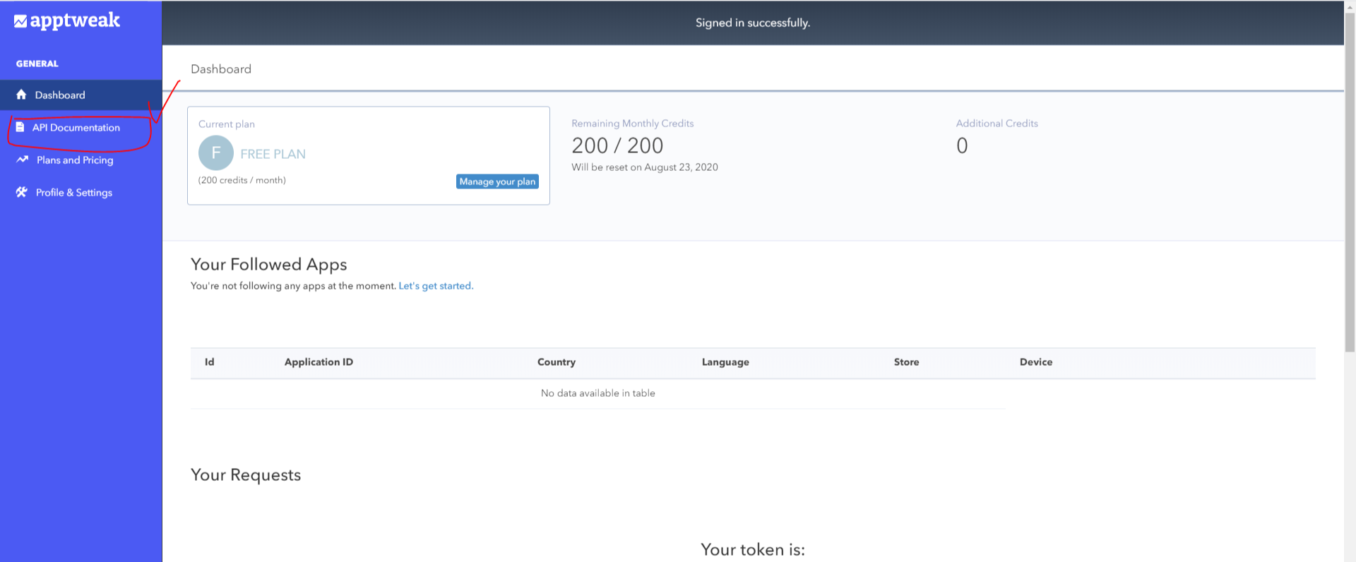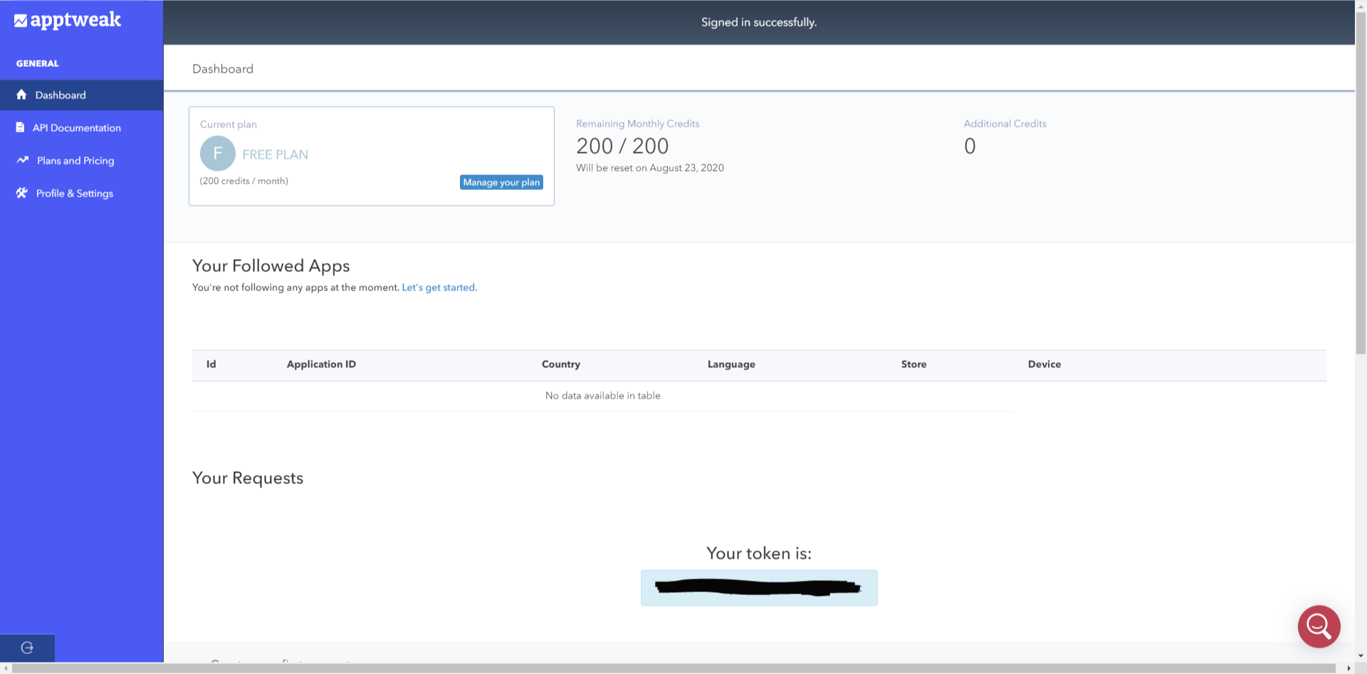 간단한 sign in을 하면 월 200번의 api request를 사용할 수 있다.