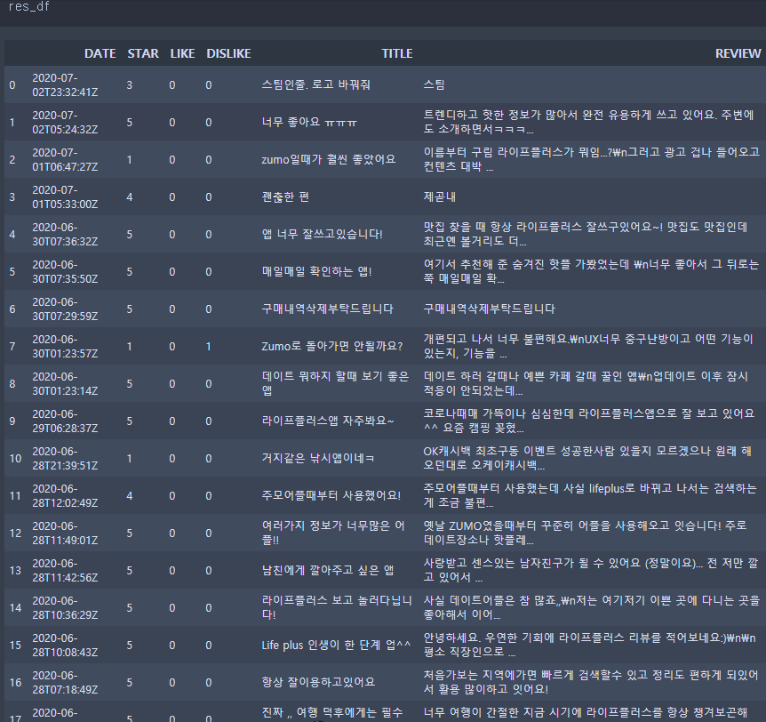 나는 라이프플러스에 대한 appStore의 사용 리뷰를 더 많이 원하는데 이 방법으로는 이상하게 더 수집이 가능하지가 않는다.