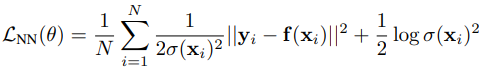해당 식은 Epistemic Uncertainty에서의 loss function에서 negative log-likelihood를 MSE로 근사시켰던 것을 대입하여 만든 식으로 볼 수 있다.(전 포스팅 참고)